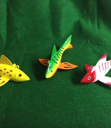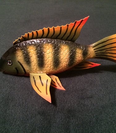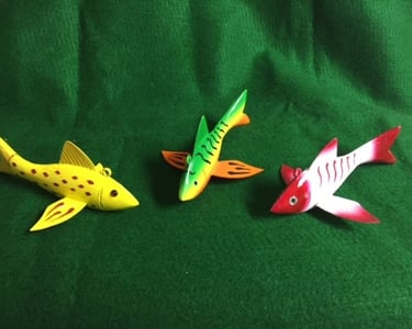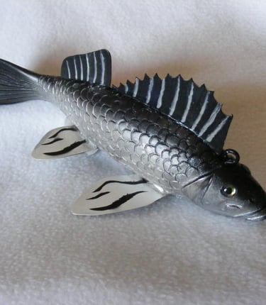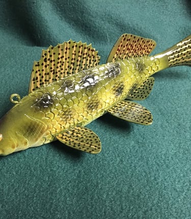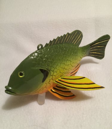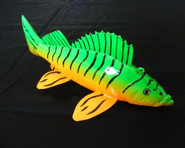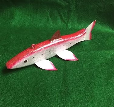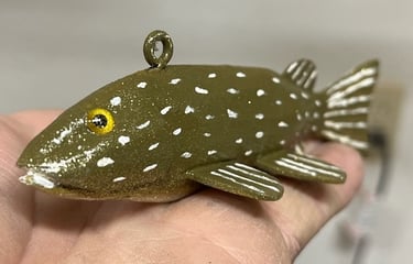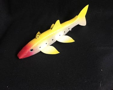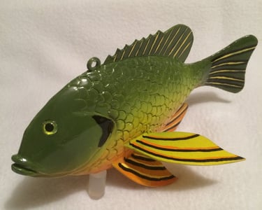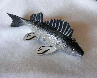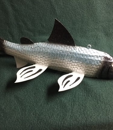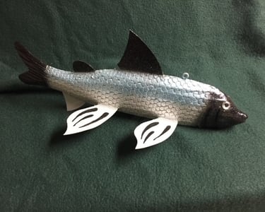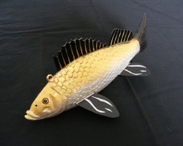 Series 11 St. Peter's Fish a MC Decoys original was inspired by an artists rendition of what the fish looked like back when Jesus was on earth. All decoys are swim tested, signed and dated, with series number and the number in the series. Limited number of these decoys will be made making them a highly collectable decoy someday.