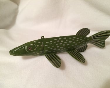 Northern Pike mini decoy measuring less than 4 inches these decoys are a treat to use and make great ornaments for that special fisherman.