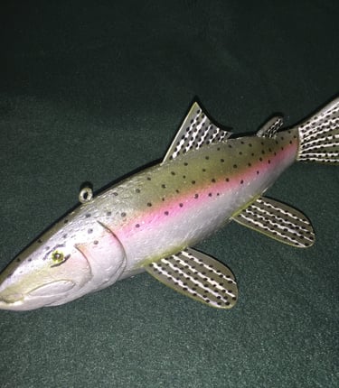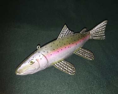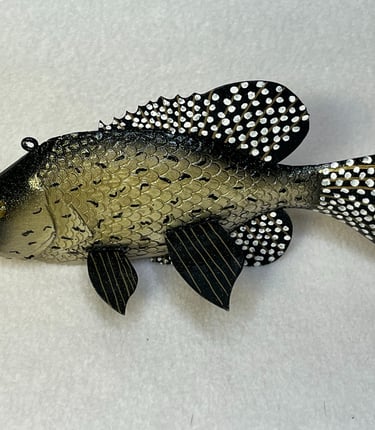 Series 14 Cisco Large slow smooth swimming decoy with unique glitter paint job makes this decoy shine in the water like no other. All decoys are swim tested, signed and dated, with series number and the number in the series.