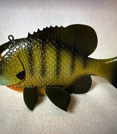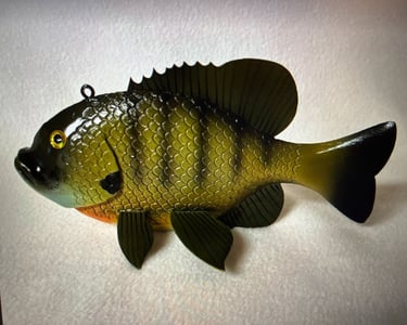 Series 12 Sunfish Spearing decoy with a realistic look with a MC Decoys twist. All decoys are swim tested, signed and dated, with series number and the number in the series.