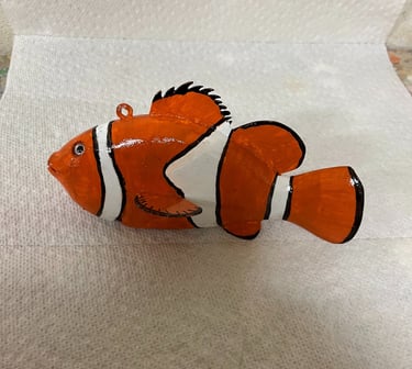 Series 24 Nemo (clown fish) Nemo was inspired by my newest Great Grandson. All decoys are swim tested, signed and dated, with series number and the number in the series. Limited number of these decoys will be made making them a highly collectable decoy someday.