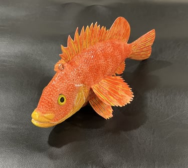 Series 23 Yellow Eye Rock Fish a MC Decoys original was inspired by an Alaskan fishing trip and in honor of my Brother. All decoys are swim tested, signed and dated, with series number and the number in the series.