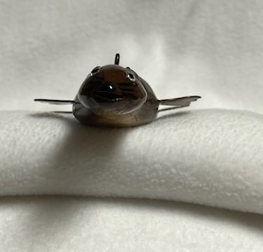 Smelt Darter with metal tail and unique glitter paint job. Great working decoy, darts out under the ice and swims back bringing in the big ones. Customize the metal tail to have it swim in a circle. All decoys are swim tested, signed and dated.
